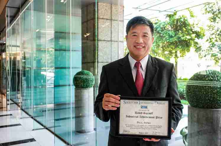 CG电子董事长彭双浪获颁 SID David Sarnoff 产业杰出贡献奖 |