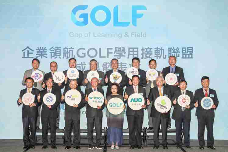 GOLF学用接轨联盟集结企业和学校的力量,,,打造「学用合一、、产学接轨」的创新合作平台 (前排左起:淡江大学副校长何启东、、元智大学校长林启瑞、、、、纬育执行长许延岳、、、、纬创总经理暨执行长黄柏漙、、教育部政务次长范巽绿、、CG电子董事长暨执行长彭双浪、、、、仁宝总经理暨执行长翁宗斌、、大同大学校长何明果、、、圣约翰科大校长艾和昌;后排左起:明新科大校长林启瑞、、、龙华科大校长葛自祥、、、、台湾科大校长廖庆荣、、中兴大学副校长郑政峯、、中央大学校长周景扬、、、台北科大副校长任贻均、、、中华科大副校长石大明、、、、明志科大校长刘祖华)