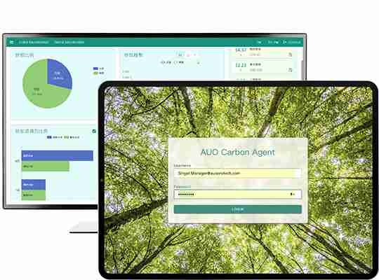 依循 ISO 国际标准建置出符合国际标准的全方位碳管理平台 (AUO Carbon Agent),,,其中温室气体盘查模组可协助客户将组织、、产品与供应链的碳排放源数据,,透过系统内建的系数资料库自动计算出碳排量,,,提升整体盘查作业的效率,,,并以此拟定长期减碳策略,,,,达到低碳转型、、净零碳排的目标。。
